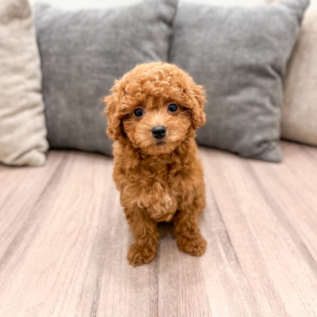 She’s at that irresistibly clumsy stage—toddling around on wobbly legs, discovering toys, and learning how to play with her siblings. She loves curling up in warm hands, drifting into gentle puppy snoozes, and offering the sweetest little nose nudges.