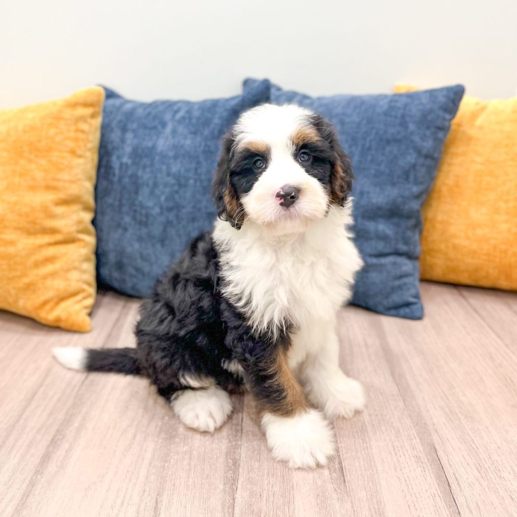 Buster is a distinguished male F1 Mini Bernedoodle who embodies the ideal blend of charm, intelligence, and gentle companionship. With his soft, low‑shedding coat and expressive eyes, Buster captures attention effortlessly, but it is his calm, people‑focused nature that truly sets him apart.
