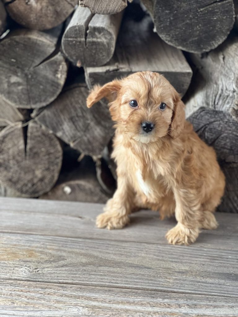 Meet Desiree, our adorable Cavapoo girl born on February 23rd. She’s the perfect blend of sweet, silly, and smart. Desiree has completed both ENS (Early Neurological Stimulation) and ESI (Early Scent Introduction), giving her a confident, well‑rounded start in life.